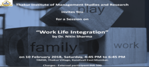 - Management Development Program conducted on “Work Life Integration” Work & life stressors will continue to increase, as expectations & choices compel us to seek for what is a “good life”. This MDP successfully conducted on 10 February 2018, TIMSR, Mumbai